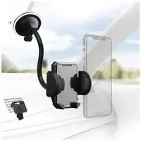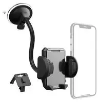 The Multi 2in1 Car Mobile Phone Holder Kit can be attached to the windscreen with the long, flexible swivel arm by means of a suction cup, allowing maximum accessibility and positioning. The phone can be turned as desired, e.g. for horizontal navigation on the smartphone. The holder for the car's ventilation louvres offer a safe and compact alternative for attaching the mobile phone.